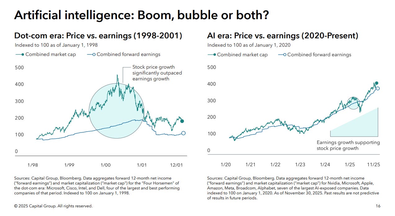 Here’s a look at the market caps of stocks charted against their forecasted earnings. Dot-com era vs right now.